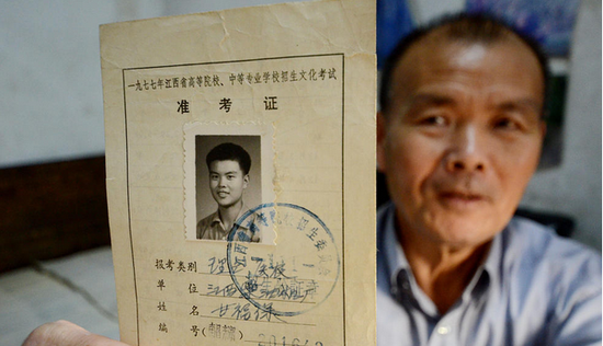 1978年夏天,迎來恢復高考后的第二次考試,考試結束后,甘福保跑到高招辦買了試卷回來自己做,從此后,他就一發(fā)不可收拾,每年高考都會買一份試卷回來,一直堅持到2016年的高考。圖為甘福保展示當年高考時的準考證。