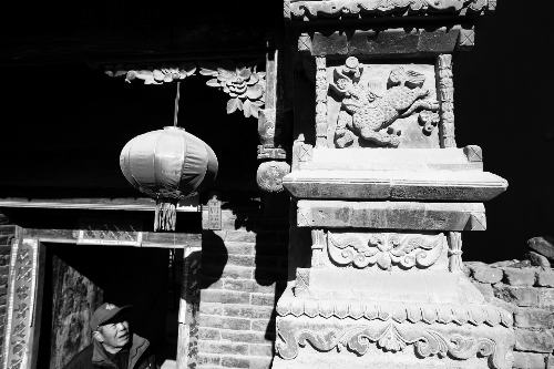這3座門樓最吸引人的,是保存完整的磚雕:鏤空的麒麟、飛舞的鳳凰騰云駕霧,惟妙惟肖,各種吉祥花飾、福壽字刻,工藝精美。門樓上的木雕,圖案以花卉為主,保存完整,工藝也可圈可點(diǎn)(如上圖)。