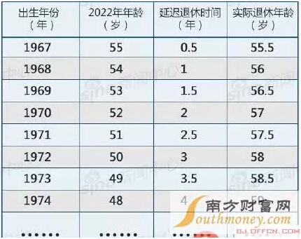 以55歲退休為標準,假定每年延長退休時間為6個月,自方案實施起,逐年累計遞增,直到達到新擬定的退休年齡。