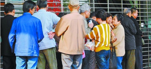 昨日8點(diǎn)30分記者在工行福州吉祥支行營(yíng)業(yè)網(wǎng)點(diǎn)看到,雖然周末上午營(yíng)業(yè)時(shí)間為9點(diǎn),但仍有20余位老人自發(fā)地在網(wǎng)點(diǎn)門(mén)口排隊(duì)等待辦理國(guó)債認(rèn)購(gòu)等相關(guān)業(yè)務(wù)(如上圖)。一位客戶告訴記者,只要有閑錢,往年遇上國(guó)債發(fā)行她都會(huì)購(gòu)買,昨日國(guó)債發(fā)行她同樣不會(huì)錯(cuò)過(guò)。