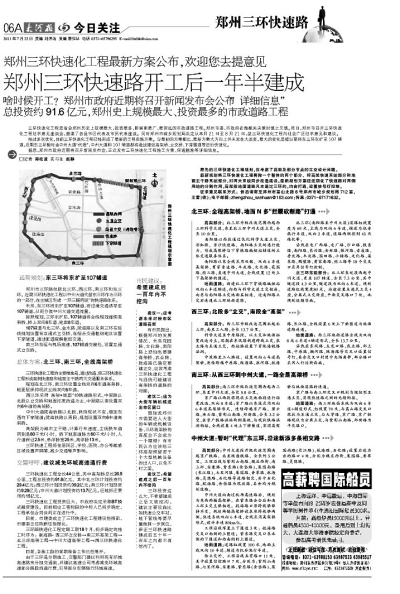 鄭州三環(huán)快速路當年曾雄心勃勃,希望“開工后一年半建成”。(圖為2011年7月22日本報報道)