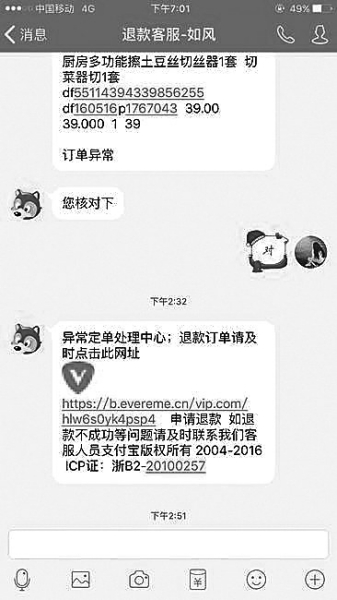 “退款不是直接可以退還到綁定的銀行卡嗎?”小帆有些疑惑。聽出小帆質(zhì)疑的意思之后,對(duì)方直接一口氣報(bào)出了小帆的個(gè)人信息,包括姓名、手機(jī)號(hào)、郵寄地址、所購(gòu)商品的單號(hào)、下單的時(shí)間等。男子讓小帆加了一個(gè)QQ號(hào),號(hào)碼名字叫“退款客服-如風(fēng)”,并將小帆的訂單信息發(fā)給她。見這一狀況,小帆放松了戒備。