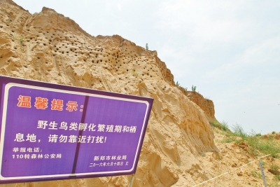 為保護鳥兒安全度過繁育期,河南省森林公安局、河南省野生鳥類觀察學會在土堆前立了一塊警示牌,上書“鳥類棲息地,禁止靠近”,呼吁社會善待候鳥。而新鄭市林業(yè)局林政科有關(guān)人員在接受記者采訪時亦稱:“我們只要一接到群眾舉報,立即會同公安機關(guān),盡快把這些燕子集中育雛地保護起來,除告知施工單位停工外,還在一定區(qū)域內(nèi)拉起警戒線,禁止無關(guān)人員驚擾燕子孵卵育雛,今年新鄭市總共有三處燕子育雛地被集中保護,新鄭市保護崖沙燕的善舉曾得到過中央級媒體的表揚,接下來我們會再接再厲,爭取做得更好?!?/p>