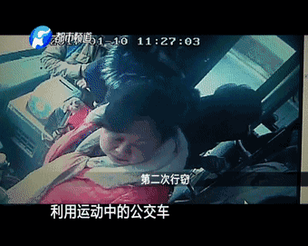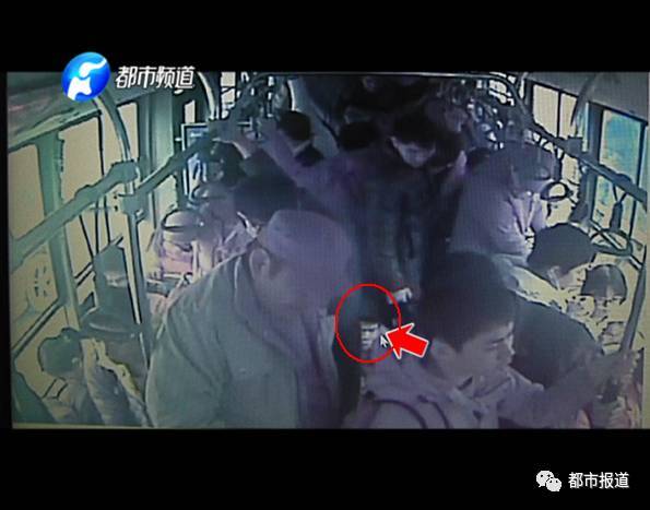 這是發(fā)生在鄭州市B12路公交車上的監(jiān)控視頻畫(huà)面,上午十點(diǎn)多,車廂內(nèi)的乘客很多。