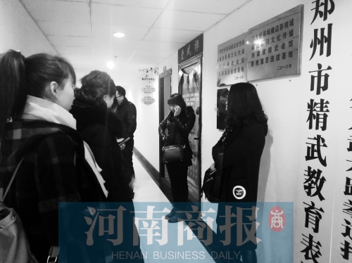 2月15日下午,十多位學生家長來到鄭州市金水區(qū)萬邦茶城旁邊的銀河商務寫字樓,商量怎么找到“鄭州精武教育學?!钡呢撠熑恕G耙惶鞄е⒆觼砩险n時,發(fā)現(xiàn)學校的門鎖著,名叫“于泉林”的負責人也失聯(lián)了?!半娫捘艽蛲?,就是始終不接電話?!睂W生家長許女士說,她的電話已經被“于泉林”拉黑了。