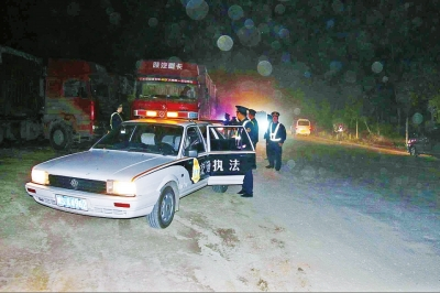 信陽60余輛超限車欲深夜集體闖崗 車被扣