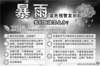對于雨天不得不出行的市民,市防汛辦工作人員也提醒,一些安全常識要牢記,如雷雨天氣中不要在涵洞、立交橋下、低洼地、較高的墻體、樹木下避雨,有警示標(biāo)志的地段切勿進(jìn)入。遇到打雷,行人應(yīng)停止行走,兩腳并攏中蹲下。汛期當(dāng)橋涵、隧道積水超過30厘米,普通道路積水超過40厘米時(shí),交警部門將封閉相關(guān)路段交通,設(shè)置禁止通行標(biāo)示牌。市民如遇鐵路立交橋下積水,應(yīng)留意水位標(biāo)識和相關(guān)警示,在水深未知的情況下勿冒險(xiǎn)涉水。在強(qiáng)降雨過程中,為加快退水,市政人員會(huì)掀開井蓋,市民要留意警示標(biāo)志,繞開窨井,確保安全。若車輛不慎掉入深水區(qū),切勿打開車窗或試圖打開車門,應(yīng)努力呼吸,找好準(zhǔn)備逃生的門把手,等水慢慢涌入車內(nèi),即將漫到車頂時(shí),深吸一口氣,然后屏氣打開車門迅速游出。