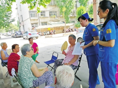 “奶奶,我們那里每月集中兩次免費體檢,您方便的時候可以過去看看?!爆F場,為82歲的郭玉蘭老人量過血壓,高嚴提醒老人再進行常規(guī)體檢,查查血糖、心臟等。高嚴說,為調動居民簽約家庭醫(yī)生服務的積極性,社區(qū)衛(wèi)生服務中心降低了免費體檢年齡,不管是鄭州市民還是外地來鄭務工者,只要年滿60周歲,自愿簽約家庭醫(yī)生服務,每年便可享受一次常規(guī)體檢。