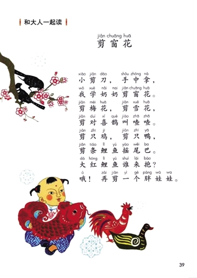 “這樣安排可以使孩子們對(duì)語文的‘第一印象’不是字母aoe,而是漢字‘天地人’。這個(gè)順序的改變是把漢語、漢字?jǐn)[回到第一位,拼音只是輔助學(xué)漢字的工具,不是目的?!壁w健娜老師說,對(duì)于剛剛上一年級(jí)的孩子而言,一上來就學(xué)拼音可能會(huì)讓孩子產(chǎn)生畏難情緒,覺得語文很復(fù)雜,相反的,對(duì)于識(shí)字而言,更能設(shè)計(jì)出一些趣味性。