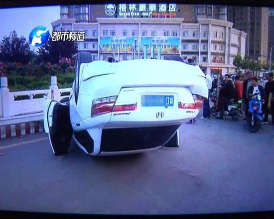 這是發(fā)生在4月26號(hào),許昌襄城縣的一起事故。視頻中一輛白色轎車飛速撞向護(hù)欄后發(fā)生側(cè)翻。