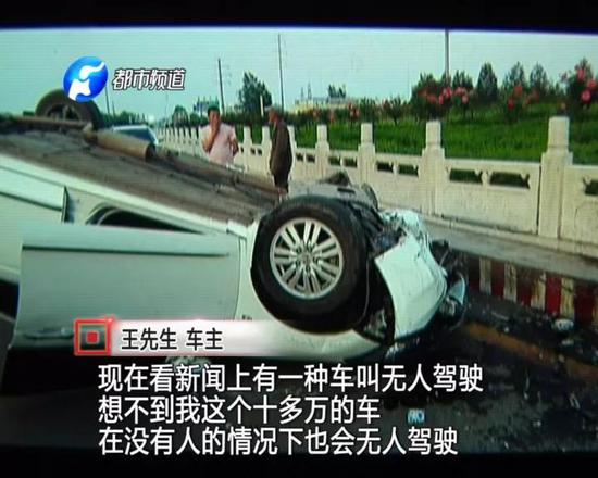 王先生說(shuō),當(dāng)時(shí)他將車停在路邊,準(zhǔn)備下車打電話,沒(méi)想到剛剛下車,車就自個(gè)兒跑了。汽車一路“狂飆”,王先生眼睜睜地看著自己的轎車撞向路中間的轉(zhuǎn)盤(pán)。
