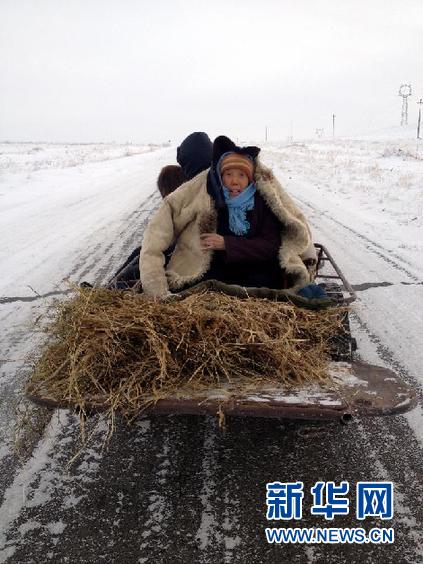 由于降雪導(dǎo)致牧區(qū)交通不暢,給牧民的生產(chǎn)生活帶來(lái)很大的困難。采訪沿途,記者見(jiàn)到了一輛毛驢車上從遠(yuǎn)處駛來(lái),車上坐著兩位老人。73歲的正藍(lán)旗烏蘭二隊(duì)的農(nóng)民張藍(lán)花說(shuō),雪太大班車也不通,老伴犯了腎病,他們只好在家門口鏟出小道,趕著毛驢車走到了公路上,準(zhǔn)備到鎮(zhèn)醫(yī)院看病。