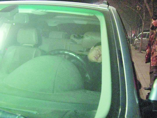 寶馬車內(nèi),男子熟睡。