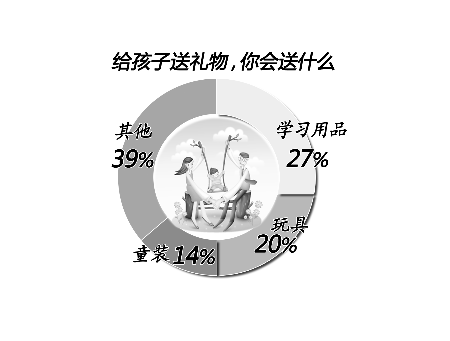昨天,河南商報聯(lián)合河南一百度發(fā)起問卷調(diào)查,近200名家長參與。調(diào)查表明,近六成家長花費在500元以內(nèi)。多數(shù)孩子不會主動向家長要禮物,但仍有32%的家長表示“兒童節(jié),孩子會主動要禮物”。