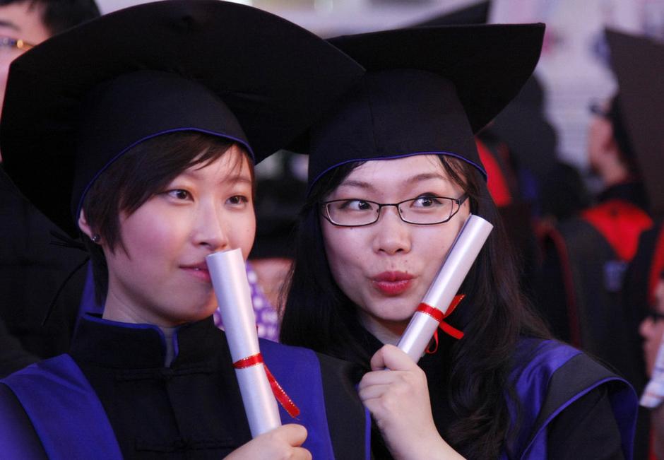 2013年6月26日晚,杭州,中國美院舉行2013屆畢業(yè)典禮,本科畢業(yè)生統(tǒng)一身著新式學(xué)位服拍照留念。