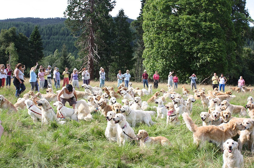 金毛犬,又名金毛尋回犬(Golden Retriever),其友好溫順的個(gè)性深得人們喜愛,在全球累積了不少“金毛粉絲”。據(jù)英國(guó)《每日郵報(bào)》8月13日?qǐng)?bào)道,英國(guó)北部蘇格蘭的金毛俱樂部在上個(gè)月舉辦了第三場(chǎng)世界級(jí)的金毛犬聚會(huì),邀請(qǐng)全世界的金毛飼養(yǎng)者帶著他們可愛的寵物——金毛犬,前來共享這一歡樂的時(shí)刻。而最終參加這個(gè)聚會(huì)的,有222只金毛犬。