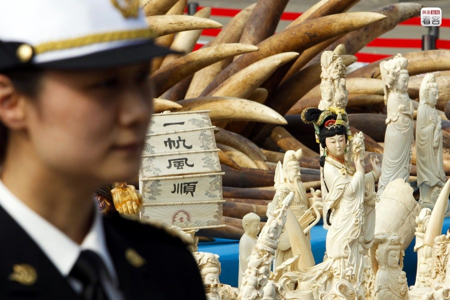 2014年1月6日,廣東東莞,中國(guó)國(guó)家林業(yè)局和海關(guān)總署集中銷毀了近年來(lái)在執(zhí)法行動(dòng)中查沒的6.1噸象牙及其制品,是中國(guó)首次公開銷毀象牙。CFP