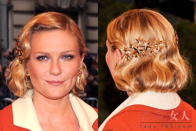 手指波浪卷+星星發(fā)飾:克爾斯滕·鄧斯特