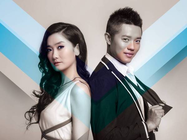 銀色燈籠袖禮服搭配上時尚的BOBO頭短發(fā)個性十足,曾毅白襯衫搭配黑色風(fēng)衣,變身優(yōu)雅紳士