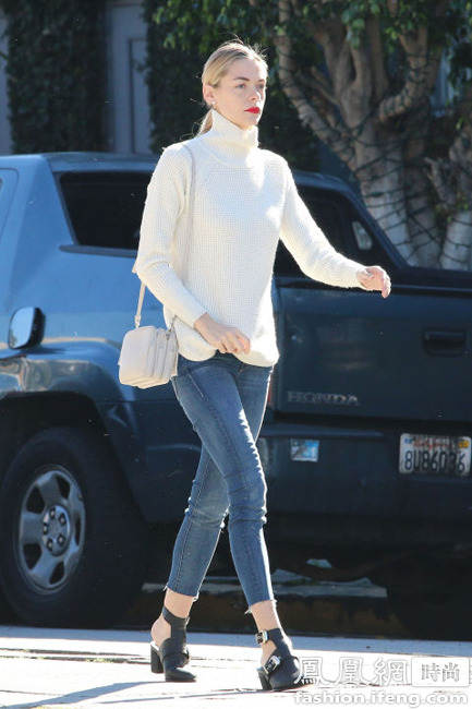 淺色系的針織衫是春季必備的單品,搭配牛仔和珍珠耳環(huán)絕對(duì)讓你立顯優(yōu)雅和氣場(chǎng),緊身的牛仔褲關(guān)鍵在于七分長(zhǎng)度剛剛好,一雙尖頭的高跟涼鞋讓美腿盡現(xiàn),整體造型簡(jiǎn)潔又時(shí)髦!