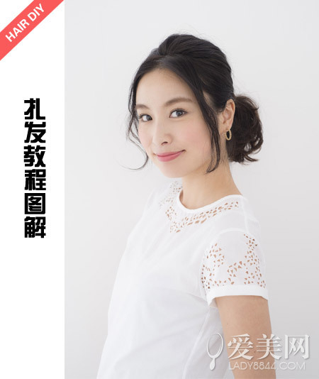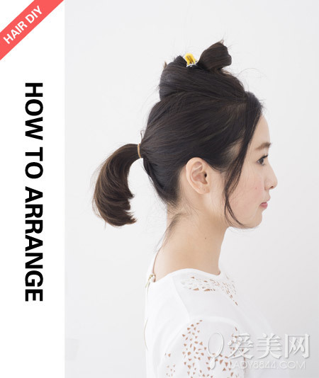 step2:留出頭頂?shù)念^發(fā)將腦后的頭發(fā)綁成馬尾。