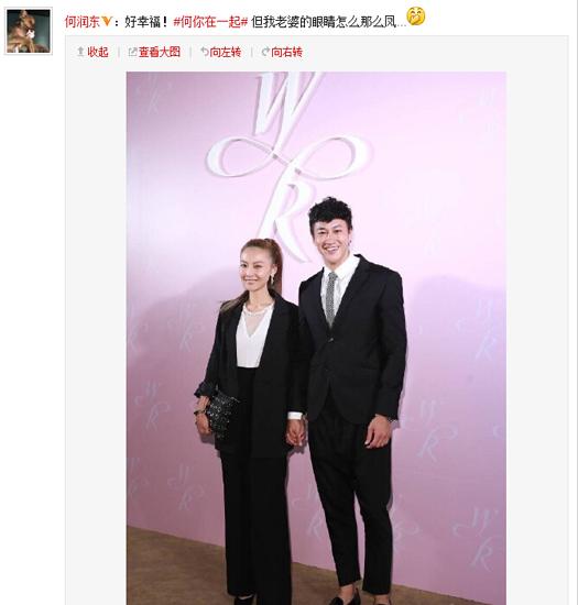 ‘何你在一起’但我老婆的眼睛怎么那么鳳……”照片中,何潤東老婆身材高挑纖瘦,扎著高高的馬尾,兩人身穿情侶黑色套裝,甜蜜的手牽手,幸福之意溢于言表,另外是夫妻倆合影林心如的照片,林心如一襲露肩白色長(zhǎng)裙,何潤東和老婆分別站在林心如兩側(cè).