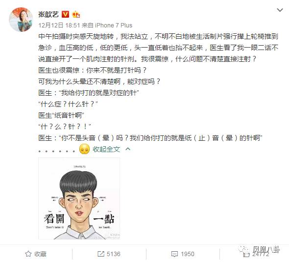 昨天張歆藝發(fā)微博控訴醫(yī)生看病態(tài)度不佳,在不問診的情況下就強行要求她打針,文末張歆藝還暗暗吐槽醫(yī)生口音太重,交流十分困難。