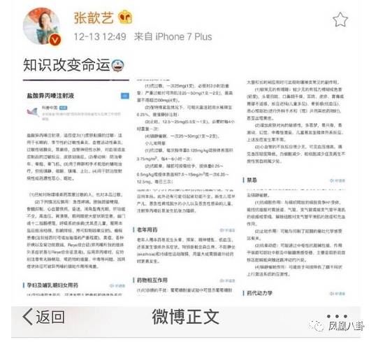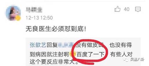 張歆藝不滿被“強迫”打針也有她的看法,她貼出了百度百科對該藥物的解釋,稱“知識改變命運”,認(rèn)為醫(yī)院在不給自己做“皮試”的情況下就打針是不負(fù)責(zé)任的。