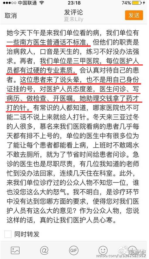 網(wǎng)友的態(tài)度一般是各站一邊,有吐槽部分醫(yī)生看病態(tài)度確實存在問題,也有網(wǎng)友質(zhì)疑明明該排隊看門診,為何利用明星身份擠占急診的名額。