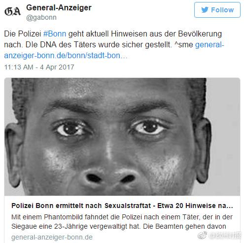 海外網(wǎng)4月4日電據(jù)歐洲時(shí)報(bào)援引德媒報(bào)道,周日(2日)凌晨,在波恩周邊露營(yíng)的一對(duì)年輕情侶遭到“深色皮膚罪犯”持大彎刀威脅。案犯劃破帳篷強(qiáng)迫23歲女子到帳篷外,當(dāng)著她26歲男友的面將女子強(qiáng)奸。案犯還威脅26歲男友稱(chēng)“如果敢報(bào)警就殺了他”。目前,警方正在通緝嫌犯,據(jù)估測(cè)嫌犯年齡在20到30歲,身高1.8米。