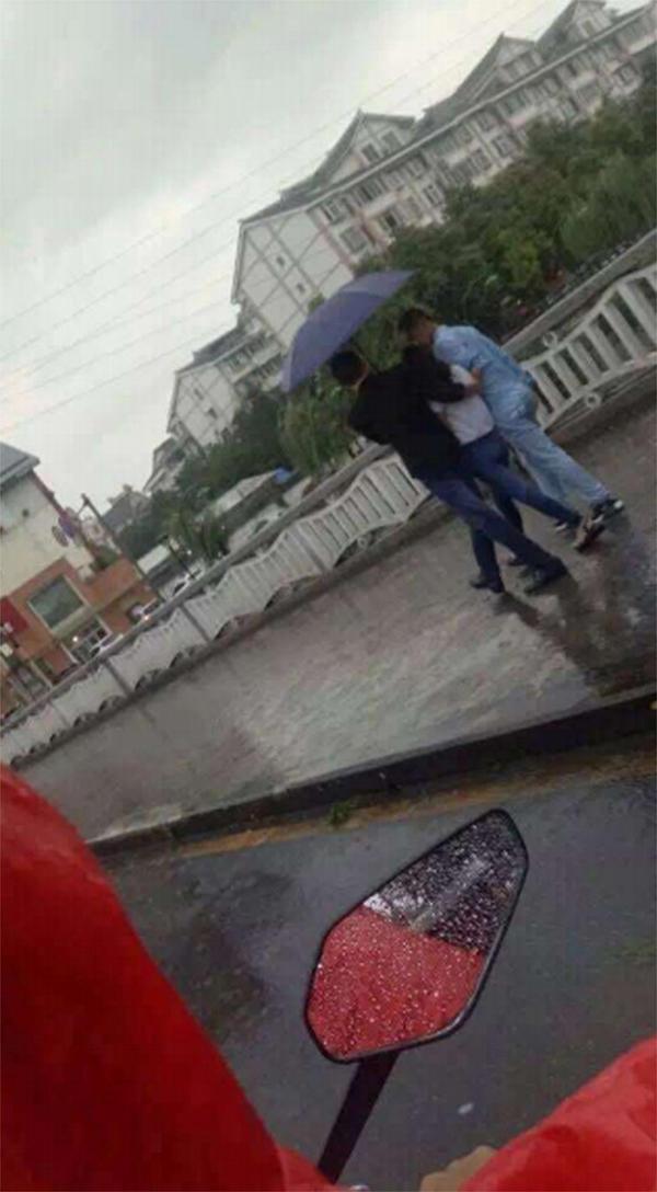 當日下午6時許,小唐正騎著電動車前往商家取餐,途經(jīng)都江堰市一環(huán)路柏條河橋路段時,橋上人行道的兩名可疑男子引起了他的注意?!爱敃r,有兩個男的撐著傘,兩人之間還架著一個年輕的女娃娃?!拔耶敃r已經(jīng)過他們了,但聽到一個男子說‘你不聽話就弄死你’,我一下就覺得不對勁了?!毙√平榻B,隨后他放慢了車速,來到了三人的身后側(cè)方位置,慢慢地跟隨在后方,同時掏出手機,拍下了三人的照片。“當時想這個女娃娃肯定是遭到了綁架,拍照可以作為證據(jù)。”
