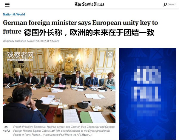 據(jù)美國《西雅圖時報》30日報道,德國外長加布里爾在巴黎出席一次駐外使節(jié)會議上,呼吁歐洲應(yīng)當(dāng)團結(jié)一致,制定出統(tǒng)一的對華戰(zhàn)略,也敦促中國不要試圖分化歐洲,而應(yīng)遵守“一個歐洲”原則。