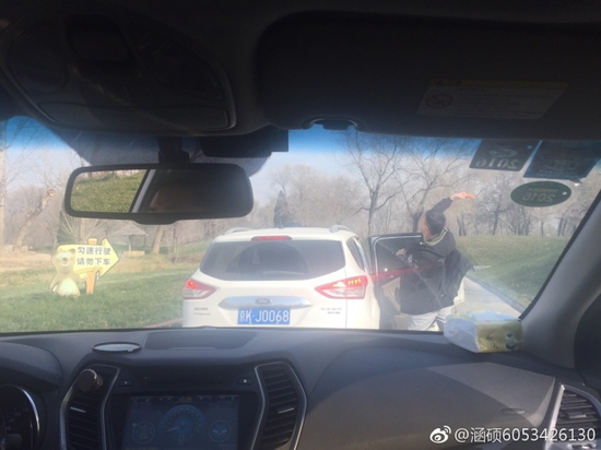 據(jù)拍照片的游客稱,其在北京大興野生動物園自駕游時,看到照片中的男子在黑熊區(qū)、棕熊區(qū)兩次下車拿東西扔向熊。