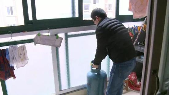 為安全起見,工作人員隨即將煤氣罐搬到了陽臺(tái)上。
