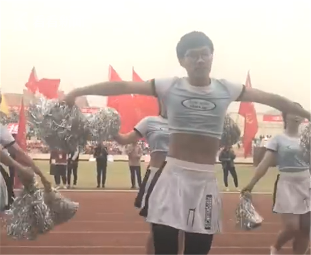 原標題:畫風清奇!鄭州大學一男生穿裙子跳啦啦操爆紅