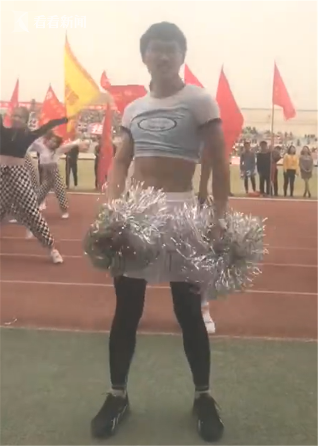 看看新聞Knews采訪到了該校另一支啦啦隊的領隊趙同學,她向記者介紹,這名男生第一場跳的時候連打底褲都沒穿,讓她有些震驚,不過后來幾場都穿上了黑色的褲子。趙同學覺得,這也是體育精神的一種體現(xiàn),很對男生都羞于參加這樣的活動,更別說穿著這樣的服裝了,這位男生勇氣可嘉。