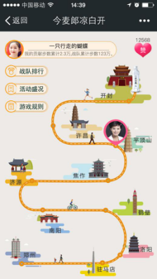 在河南十大名嘴戰(zhàn)隊中選擇一個你要支持的戰(zhàn)隊加入,即可為該戰(zhàn)隊捐贈當(dāng)天的微信運動步數(shù),該戰(zhàn)隊獲得用戶捐贈步數(shù)后可在規(guī)定的線路中前進,到達終點為獲勝。