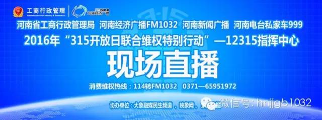 2014年,河南經(jīng)濟廣播聯(lián)合河南省工商局開展了“315消費維權聯(lián)合行動”。我們在省12315消費者投訴舉報中心搭建直播現(xiàn)場,接聽全省聽眾電話,快速分轉,及時答復,高效解決消費者投訴,1032記者奔赴全省各地市接受消費者投訴和舉報,并聯(lián)合工商部門第一時間解決問題,全部展現(xiàn)了維權過程。