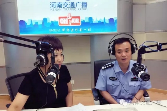 6月16日上午,鄭州市公安局交巡警支隊(duì)竇立勇支隊(duì)長帶領(lǐng)車管所、交通科研所、法制、交通、事故等科室負(fù)責(zé)人做客河南交通廣播《南方談交通》節(jié)目,與廣大車友就交通出行話題實(shí)時互動。