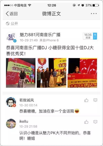 2016全國十佳DJ大賽,風云聚首!魅力881河南電臺音樂廣播DJ小糖榜上有名,恭喜DJ小糖獲得全國十佳DJ大賽優(yōu)秀獎!
