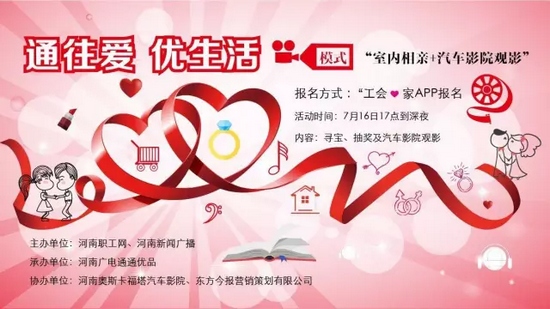 河南新聞廣播聯(lián)合河南省總工會(huì)職工網(wǎng)、河南廣電通通優(yōu)品、河南奧斯卡福塔汽車影院等多家單位,為廣大聽眾、單身職工舉辦一期攜手憧憬新生活,體驗(yàn)高品質(zhì)生活為主題的相親活動(dòng)——“通往愛,優(yōu)生活”。