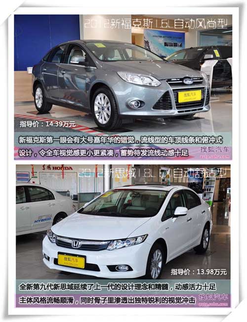 在今天的對比中,筆者精選了其中的兩個深受追捧的新車型:來自長安福特三廂新福克斯1.6升自動風(fēng)尚型與來自東風(fēng)本田的思域1.8升EXi自動舒適版,主要是通過簡單對比來衡量一下,這近期上市的兩款合資品牌緊湊型車,孰能離“神壇“更近一步,獨享神車美名,當(dāng)然挑選對比的理由也很簡單,售價接近且熱銷。下面,筆者就來從配置的角度出發(fā),讓準(zhǔn)車主們一飽眼福: