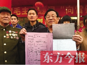 上午10時(shí)許,谷殿明和手下員工,向在場群眾展示了一份“戶口本”和一份“房產(chǎn)證”。打開“房產(chǎn)證”,持證人姓名一欄赫然填寫著“雷鋒”的名字,名下房產(chǎn)面積近200平方米。這張“房產(chǎn)證”并不是房管部門核發(fā),而是老谷特制的。去年學(xué)雷鋒日,谷殿明曾把雷鋒的戶口從湖南省長沙市望城縣遷到了這里,今年,他索性給雷鋒找了家,辦了“房產(chǎn)證”。