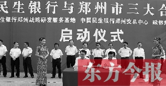 東方今報(bào)鄭州訊 6月24日,中國民生銀行與鄭州市政府共同主辦的三大合作項(xiàng)目啟動儀式在鄭東新區(qū)金融后臺服務(wù)園區(qū)舉行。這三大項(xiàng)目分別是:鄭州市政府與中國民生銀行簽訂《“共建和諧小區(qū)”政銀戰(zhàn)略合作協(xié)議》、中國民生銀行鄭州戰(zhàn)略研發(fā)服務(wù)基地奠基、中國民生銀行鄭州交易中心揭牌。省委常委、常務(wù)副省長李克,省委常委、鄭州市委書記吳天君,中國民生銀行董事長董文標(biāo),中國民生銀行副董事長、黨委書記、行長洪崎等出席儀式。