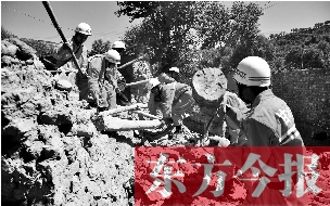 甘肅省定西市公安消防支隊官兵在岷縣梅川鎮(zhèn)馬家溝村展開救援