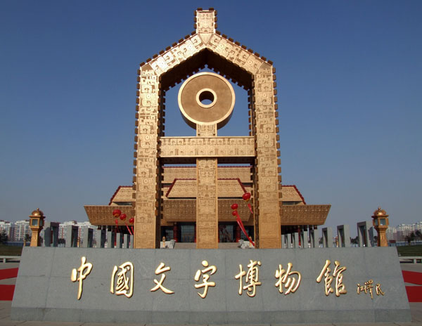 【中國文字博物館】 中國文字博物館是經(jīng)國務(wù)院批準(zhǔn)的集文物保護(hù)、陳列展示和科學(xué)研究功能為一體的國家級(jí)專題博物館,是“十一五”國家重大文化工程,世界唯一的文字博覽工程,館名由江澤民同志題寫。該項(xiàng)目一期工程于