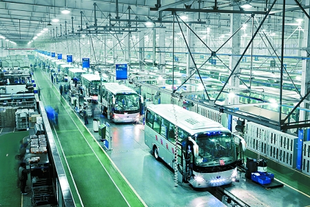 4月19日,現(xiàn)代化的宇通客車生產(chǎn)線正快速運轉(zhuǎn)。今年一季度,鄭州宇通客車股份有限公司共銷售各類客車10168輛,成為行業(yè)內(nèi)唯一超過萬輛的企業(yè)。其中,共出口各類客車1531輛,出口額達到了10.12億元,出口量和出口額均名列行業(yè)第一。 河南日報記者 王 錚 攝