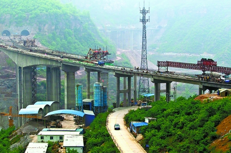 4月24日,林(州)長(zhǎng)(治)高速公路林州太行大峽谷段正在緊張施工。該段工程全長(zhǎng)2.91公里,施工線路中有3座大橋、3條隧道,地質(zhì)條件復(fù)雜,施工難度大。承擔(dān)施工任務(wù)的中鐵大橋局的建設(shè)者們克服種種困難,現(xiàn)已基本完成主體工程建設(shè),確保了今年11月份通車。