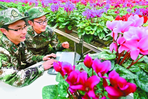 12月19日,鄢陵縣柏梁鎮(zhèn)民兵在網上銷售花卉。今年,該縣在民兵中開展了“一名民兵一個項目”活動,并成立了“民兵創(chuàng)業(yè)示范基地”,引導民兵選擇回報率高、銷路相對暢銷的花卉作為創(chuàng)業(yè)項目,帶動周邊農戶種花致富。牛書培 權國棟 攝