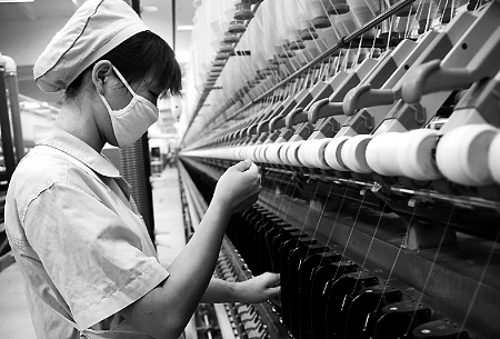 3月26日,位于鄧州市產(chǎn)業(yè)集聚區(qū)內(nèi)的永泰棉紡股份有限公司員工正在趕制訂單產(chǎn)品。  盛志國(guó) 攝